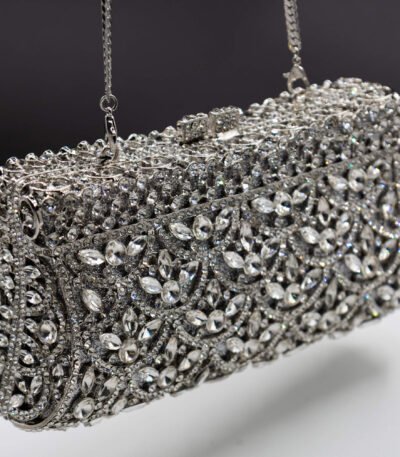 TIARA TOTE CLUTCH-CRYSTAL SILVER